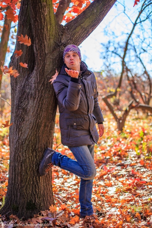 Ищем чистое место, ложимся на землю. Если у вас есть подруги, попросите их набрать побольше листьев в руки. Вспоминаем фразу «Пани лягли и просять», пытаемся это изобразить. По команде фотографа подруги бросают листья на вас. Эта поза позволяет, во-первых, тренировать соблазнительный взгляд перед зимней сессией. А, во-вторых, вы поймете, какая из подруг вас ненавидит, - когда она подложит в охапку листьев кирпич.