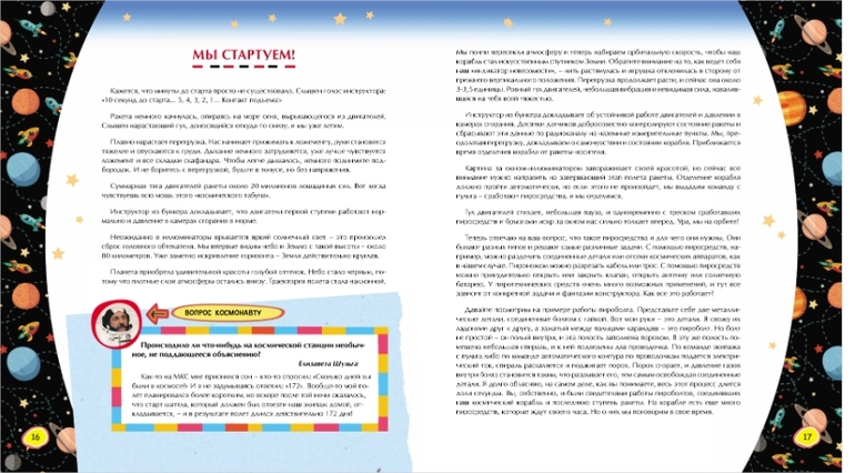 Вопросы Ю. Усачеву задают не только участники его космической экспедиции. Еще во время подготовки книги к печати издательство «РОСМЭН» в нескольких СМИ и на разных площадках в социальных сетях интернета провело акцию «Задай вопрос космонавту». Например, трехлетний Паша спрашивал: «Почему, прежде чем полететь в космос, я должен вырасти?» Редакция получила множество вопросов от будущих читателей, все они были переданы автору.