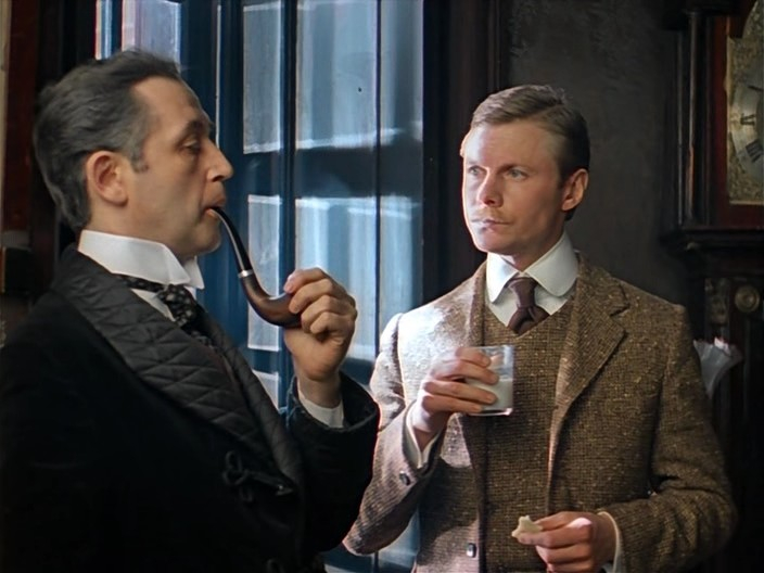 Этот сериал есть в моей фильмотеке, я его считаю очень " уютным" , люблю его смотреть , пить чай, накрвшись теплым пледом. Меня всегда в этом фильме поражали интерьеры. Кресло Шерлока холмса , просто мечта. А как они завтракают? Меня в детстве все время поражало яичко в поставке, поэтому , как только они появились в продаже, тут же купила себе