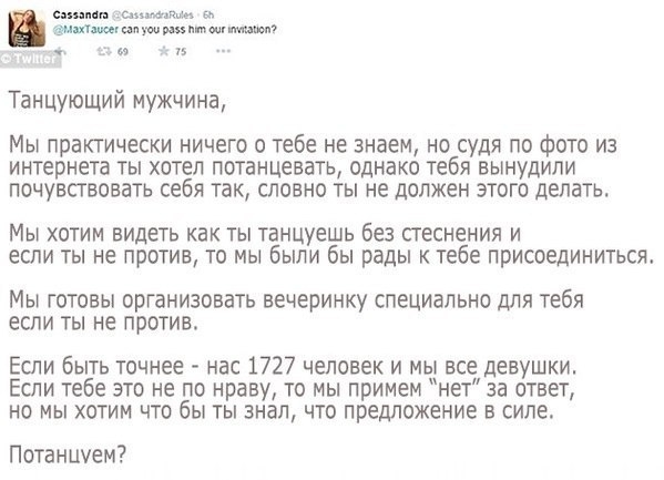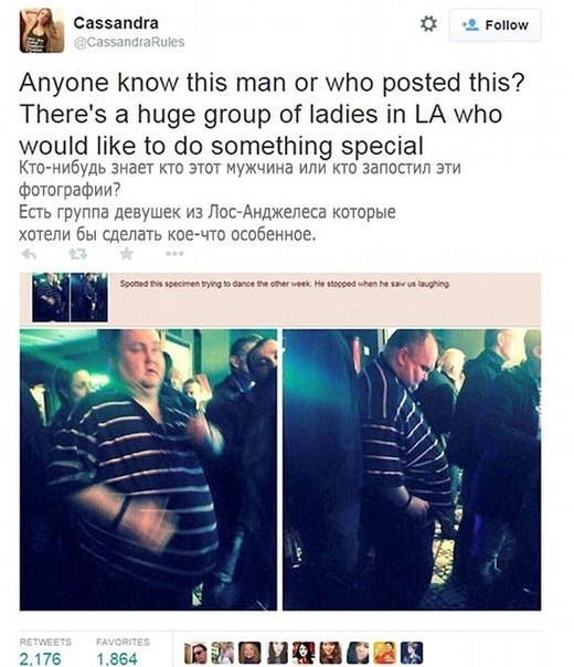 После этого поста-осуждения, в твиттере развернулось целое движение, чтобы поднять самооценку полного мужчины и потанцевать с ним и для него.