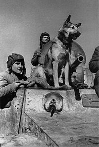 Овчарка Дина, принимая участие в «рельсовой войне» в Белоруссии, осенью 1943 года успешно выполнила боевую задачу: выскочила на рельсы перед приближающимся немецким воинским эшелоном, сбросила вьюк с зарядом, зубами выдернула чеку капсюля-воспламенителя, скатилась с насыпи и умчалась в лес. Дина была уже рядом с минерами, когда прогремел взрыв, взорвавший эшелон[3]. В краткой сводке говорилось: