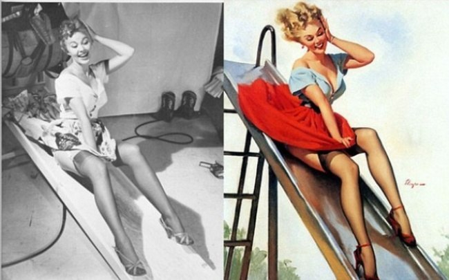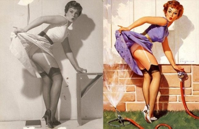В направлении пин-ап Джил Элвгрен (Gil Elvgren) - культовый художник. Его прославили плакаты и календари 50-х годов ХХ века, на которых он запечатлел «девчонок по соседству», застигнутых врасплох в забавных и пикантных ситуациях.