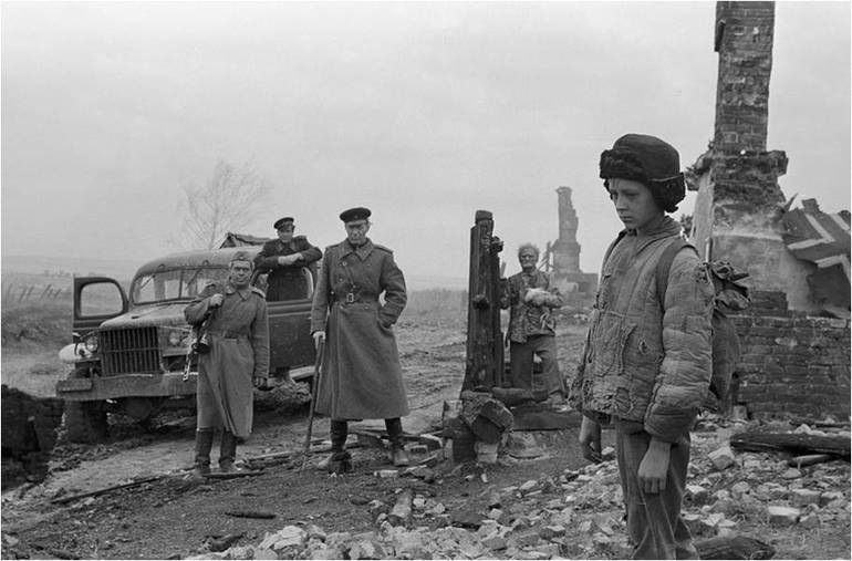 Послевоенное кино отметится патетичным и мифологическим «Падением Берлина» со Сталиным-Геловани. Но такие фильмы - скорее исключения. Начало пятидесятых - это не время мифа, это время живого горя. Слишком многие прошли через настоящую войну, и их не обманешь. Сцену казни для фильма «Молодая гвардия» снимали на месте действия - в луганском Краснодоне. Местные жители рыдали, родители погибших молодогвардейцев падали в обморок. После войны о ней снимают мало, устали (и вообще это период «малокартинья»). Но есть интерес к скрытой стороне минувших событий. Уже в это время и позже заметно стремление искусства защитить тех, кто был на «оккупированной территории», как писали тогда в анкетах, или в плену. Советское военное кино в целом очень гуманистично, стремится уходить от официоза и обладает широким углом зрения: от окопа, даже шире - от любовной истории, которая является чуть ли не атрибутом военного фильма, до переговоров Сталина и Черчилля, снимаемых с подчеркнутой документальностью. Военные истории противоречат официозному сталинизму, поскольку изначально они про настоящее народное чувство и свободу.