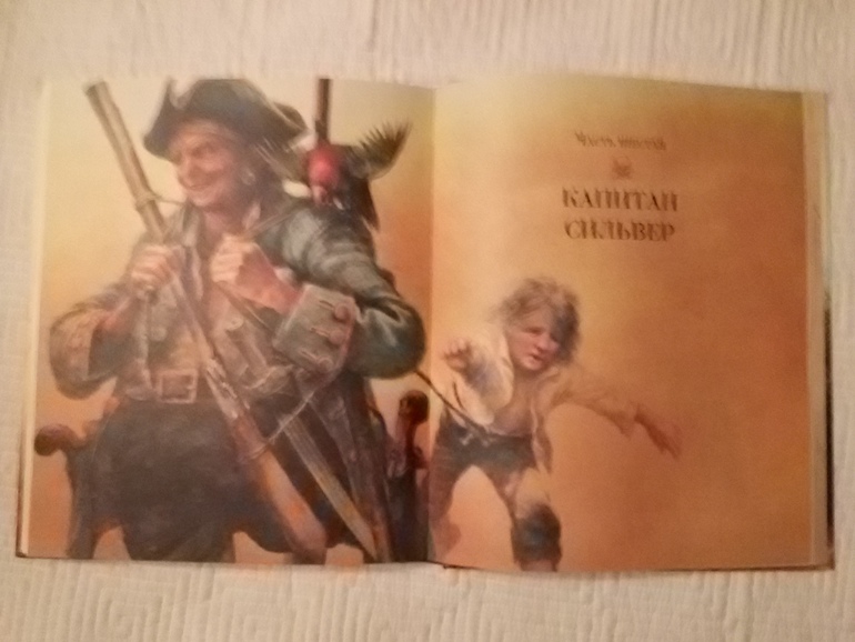 А вот это для старшего. Просто нереальная книга! Классика, одна из моих любимых, но исполнение... ощущение присутствия там, когда её читаешь! Как будто держишь в руках настоящую карту сокровищ!!! Я в восторге, а старший сразу взялся её читать (это нонсенс! Читать он терпеть не может. Была цель заинтересовать, и наша фея справилась на 100%!!!)