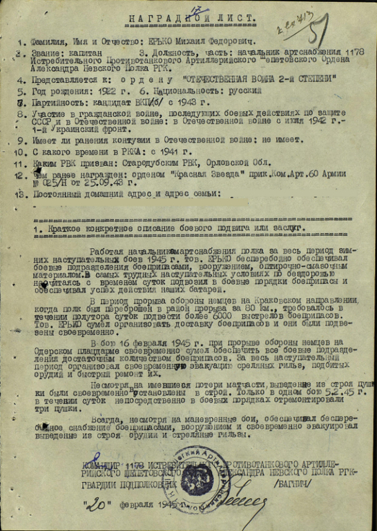 Дед умер рано, мне было 13 лет. Дослужился он до полковника. На войне он шел по карьерной лестнице, стал подполковником и начальником тех службы. Работал начальником арт снабжения полка под Краковом.