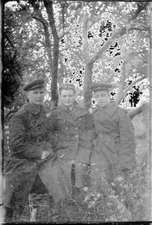 На данный момент, жива моя бабушка. В 2015 ей исполнилось 88! И ее младшая сестра Шурочка (та что на коленках) до нашего города немцы не дошли, остановились под Ельцом, это в 40 км от нас, но город часто бомбили и конечно был голод. В то время дети уже работали, бабушка моя копала окопы (братские могилы), в которые складывали мертвых солдат. И как-то раз, они насобирали себе немецких пуль, их было много раскидано в лесу, красного, зеленого цвета и это их естественно привлекло. Но когда наши солдаты, увидели эту бригаду с отвисшими карманами, быстро ликвидировали у них все и еще долго ругались, ведь взорваться могли!