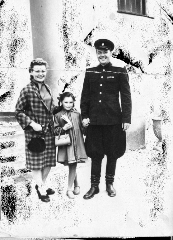 А это фото послевоенное, моя бабушка, мой дедушка и моя мама, еще очень маленькая девочка.