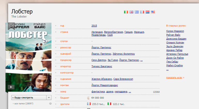 Авторское киноЗнаете, есть фильмы хорошие, которые будешь потом пересматривать. А есть хорошие, которые пересматривать не хочется. Так вот, The Lobster, из последних. Фильм замечательный. Отлично снят и сыгран. Интересная история. Обласканный критиками и не понятный для зрителя. Очень рекомендую к просмотру. Под настроение. Чтобы без перекусов и пива. Просто, однажды вечером.