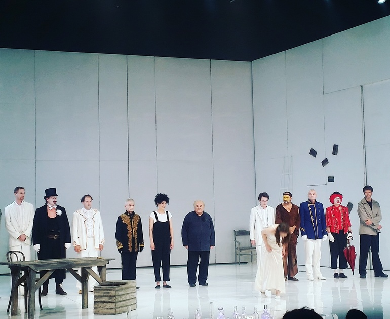 Спектакль идет 1 час 40 мин без антракта. Все это время сидишь и ждешь, чем еще тебя удивят. И удивляют! Потрясающее действо, которое заставляет и посмеяться, и восхититься, и задуматься.