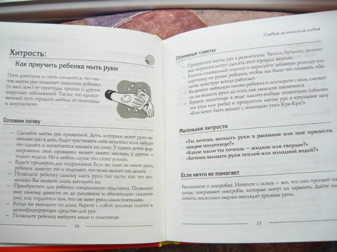 Внутри прекрасное оформление и множество интересных советов на все случаи жизни: от расчесывания волос (советы подстричь волосы покороче, если ему трудно расчесывать, мыть голову, используя шампунь и кондиционер и тд)
