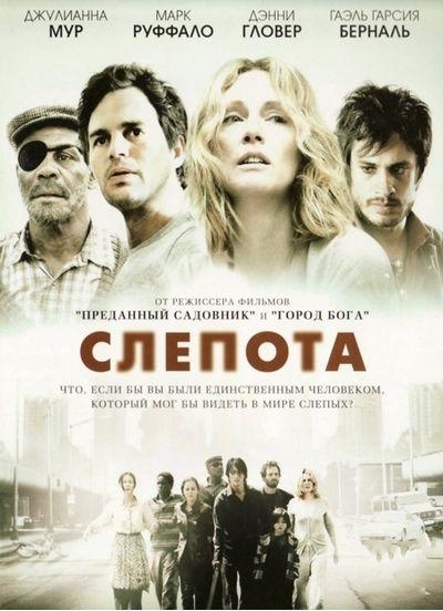 ... однажды на мир (представленный в рамках экрана мегаполисом, чьё название так ни разу и не было названо... впрочем, с названиями, с личными именами тут вообще - никак. героев можно обозначить нейтральными - "доктор", "жена доктора", "мальчик", "человек с повязкой на глазу") опустилась эпидемия слепоты. Первых заболевших пытались изолировать, и потому львиная доля фильма приходится на попытки выжить в пространстве, ограниченном не только слепотой, но и просто - ограниченном: забор, решётки, вооружённая охрана. Впрочем, в символичном континууме фильма всё это является моделью целого поражённого слепотой мира, и кто видел борьбу за жизнь на этом пятачке, тот видел её принцип. Среди моря слепых - адаптирующихся, пытающихся поддержать друг друга и хотя бы какое-то подобие порядка (а порядок в голове начинается с заправленной постели, мы помним), отчаявшихся, равнодушных, озлобленных - среди них всех есть одна зрячая. Она может не только ощущать, но и видеть почти молниеносный распад социальных связей, обесценивание табу, резкое изменение ценностной шкалы, этики и морали.