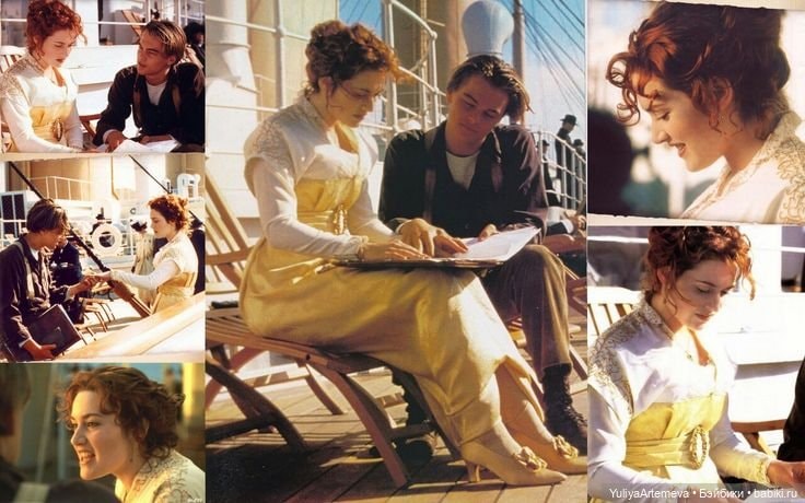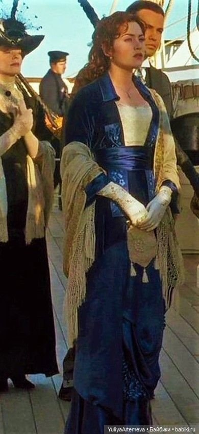 Костюм дополняют колье и серьги под жемчуг. Именно в этом костюме случился первый поцелуй Розы и Джека