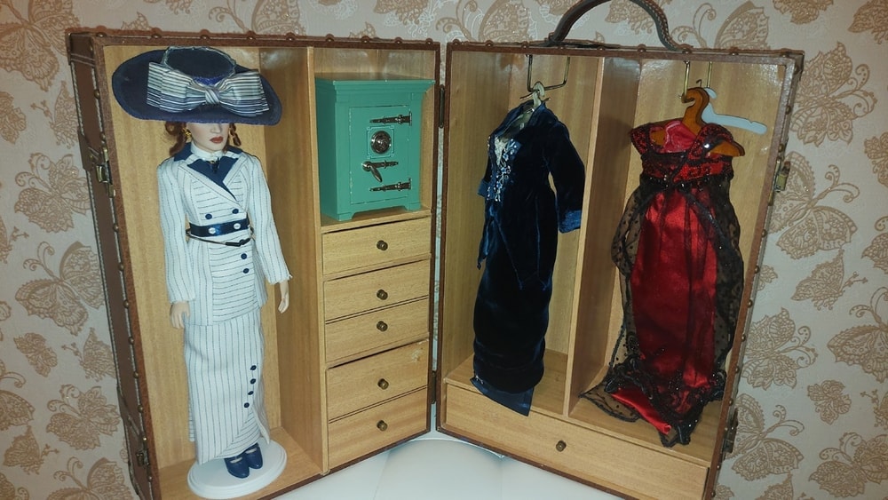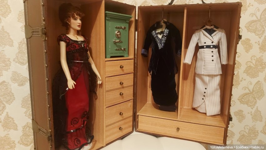 Открываем саквояж, а там все для бережного хранения нашей куклы и ее нарядов . И первое к чему потянулись мои руки, это был сейф, достаточно крупная модель