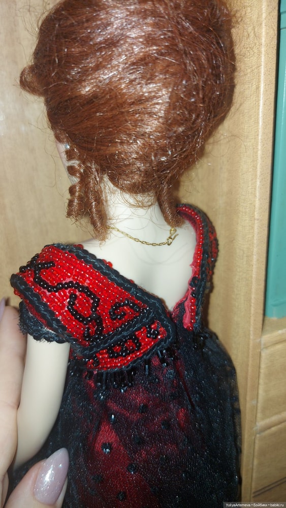 Камень в колье более темный, на фотографию получился ярким от вспышки камеры. В саквояже в подарок шло два аутфита, зато каких памятных по фильму