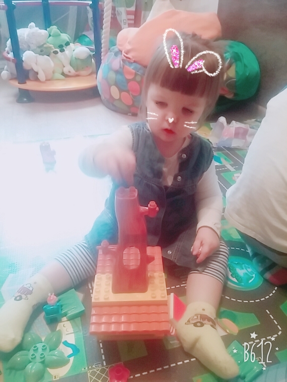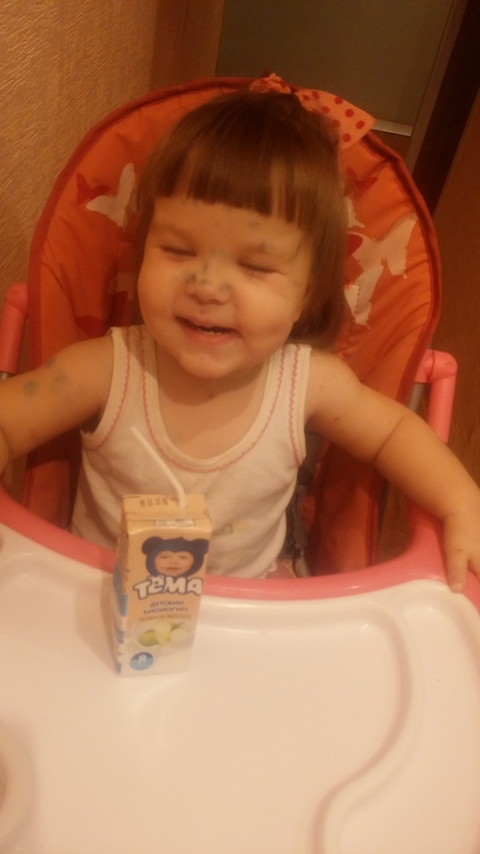 Освоила "ладушки-ладушки", всегда очень радуется, когда делает. Много улыбается. Красивая, синеглазая, блондинка. Уже делаем первые хвостики. Я мечтаю заплетать коси