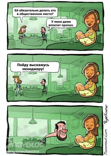 Это отвратительно.Карикатура тех,кто не понимает сути ГВ,рисовала какая-то озлобленная тетка. Грязь как в адрес кормящих,так и мужчин.Мужчина,возбуждающийся на кормление грудью ребенка-не здоров психически. В церкви тоже мужики сиськи Девы Марии рассматривают?!:((( Вы троллите в сообществе?