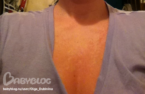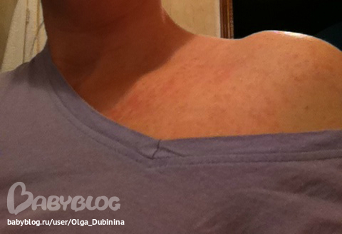 Здоровье мамыВчера в районе груди появилась краснота, сегодня всё пошло гораздо дальше, а вернее ниже - живот, руки, плече, бёдра...Извините за качество фотографий, фотографировала на телефон. На фото, такое чувство, как будт автозагар пятнами лег...Вот этот "автозагар" - краснота, а белые пятна - это нормальная кожа... И эта краснота распрозается по телу! На спине как будто легкий зуд, но может это уже у меня от нервов, не знаю... Девочки, что это такое? Можно мне кормить малыша? У него на спине вчера тоже какие-то прыщи вылезли, одиночные, штук семь, но очень красные... И орет сегодня целый день... Что же это такое? Завтра, конечно, к дерматологу, но может нам ГВ приостановить...
