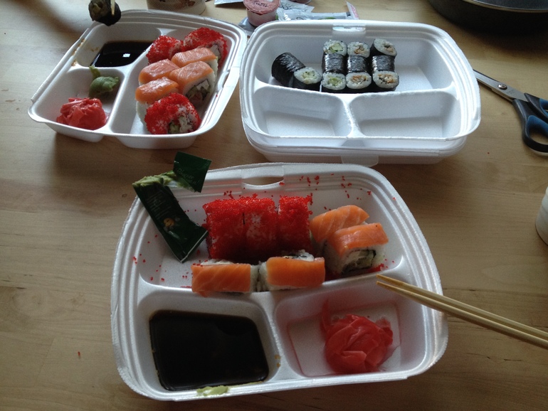 Питание мамыПоддержу флешмоб - наш ужин сегодня :-) Без особой эстетики, просто заказали роллы на дом.