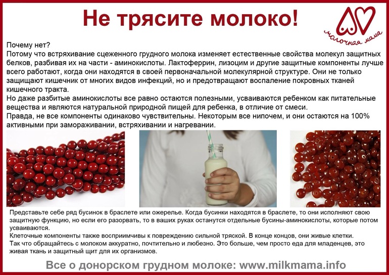 Вообще, конечно, не стоит трясти молоко слишком сильно, потому что тогда получится отличная пенка для капучино, а грудничкам такого не надо.