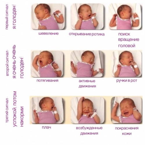 я думаю, что только в периоде новорожденности. дочь в 1,5 месяца активно двигается и постоянно грызет кулачки, хотя не голодная. когда хочет кушать, чмокает губками, на руках поворачивается и тычется в грудь, если сразу не дать, то начинает плакать.