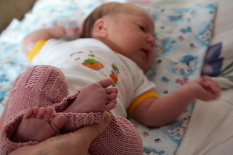 Я смотрю на мою девочку и думаю: "Может она не Алеся? Может она Вера... или Марфа?.." Как-то быстро возникло имя на этот раз, я, похоже, к этому оказалась не готова. )) Но на следующий день опухлость и синяки от перетяжек пуповины уходят, и я вижу, что это настоящая Алеся. Нарушая нормы гигиены и правил роддома, Леся постоянно находится со мной в одной кровати, а не в детской люльке. Леся всё время сосет грудь. Когда она не ест - она спит. Спит она лежа сладким комочком на моей груди и животе. Я не могу отпустить ее от себя ни на минуту. Когда приходит время поменять ей пеленки, я несу ее в душ. Лесина мордочка рисует такое явное удивление от прикосновения струй теплой воды. Такого в ее жизни еще не было! )) Она не плачет, нет, она просто удивляется. Всё кажется еще более нереальным еще и на контрасте с шебутным Тёмкой. С Тёмкой всё было долгое время борьба и компромиссы. С Лесей всё идет правильно с первой секунды. С первой секунды мы вместе и не расстаемся. Я заранее написала отказы от прививок (я не против прививок в принципе, но я против прививок новорожденным), поэтому ее никуда не уносят.
