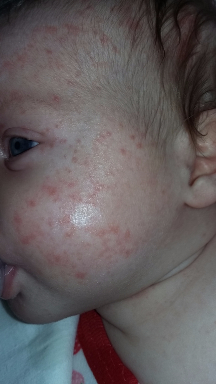 У старшей была и такая сыпь как акне (сама прошла) и была аллергия на лице(выглядело не так)