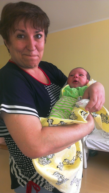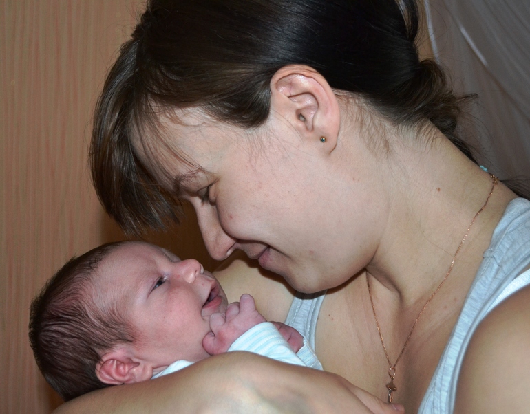 Итак, сын мой родился в 41 неделю с весом 3950 гр. Молоко пришло на второй день, гинеколог, или кто там ходит и щупает титьки на наличие молока,получив струю в глаз, уверенно сказал, что тут проблем не будет. В принципе, могу сказать, что наше ГВ было довольно беспроблемным, хотя и пережила периоды, когда мне казалось,что ребенок недоедает, молока не хватает или его мало, или его невозможно сцедить ( кстати, за все ГВ я сцеживала один раз, когда был небольшой лактостаз). И я не знаю,сколько у меня молока в груди было, мало или много, какая у меня там емкость и хватает ли ребенку. Просто кормила по каждому писку. На фото моя мама, просто захотелось показать, какой был сынок. Я, наверное, неправильная мама, но мне мой ребенок не показался красивым, когда родился. Муж вообще спросил, где у него глаза и останутся ли они такими узкими))))