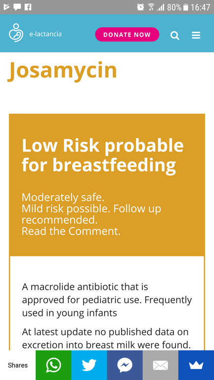 Скажите, пожалуйста, совместим ли Вильпрафен с ГВ? Может кому-то назначали. Что-то у меня Е-лактанция не грузится. Мне его во время беременности назначал ЛОР при гайморите, а вот можно ли его при ГВ.