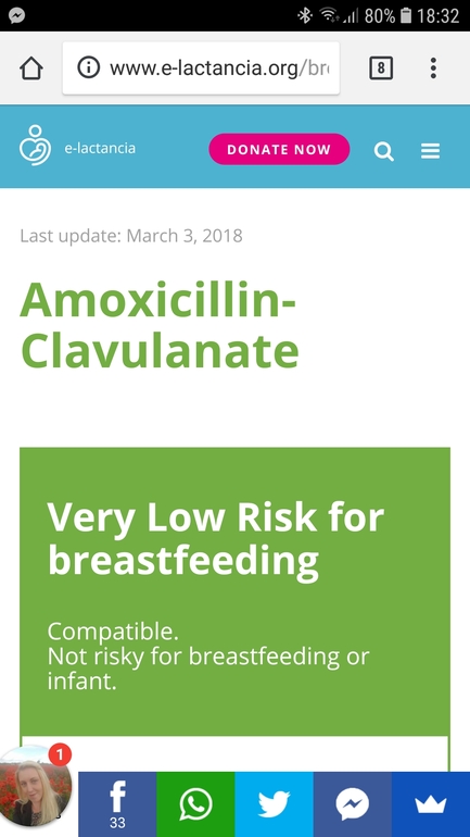 Амоксиклав, амклав совместимы с гв, мне и с первым и со вторым пришлось принимать. Во вторых родах вообще капали коктейль из трех ,,вкусняшек'' - гентамицин, метронидазол, амоксиклав. Все живы здоровы.