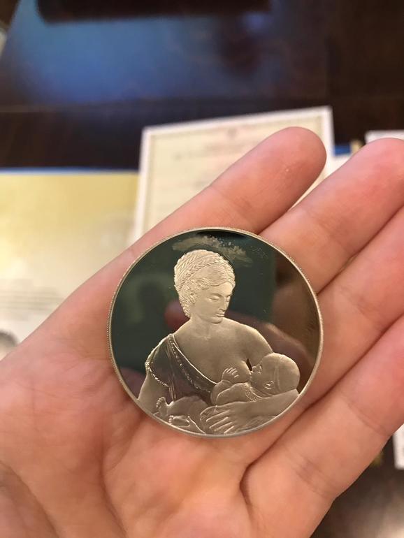 Кстати, в СССР Ленинградским матерям тоже давали медаль, у моей сестры такая есть. Но на ней изображён (конечно же) Ленин, что не имеет никакого отношение ни к родильницам ни к новорожденным: