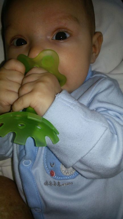 на улице мы не всегда спим и в ход уже пошел плед. да и слюни рекой текут. в общем купила я прорезыватель. просто потрясающий. ребенок рад и может минут 10 его рассматривать и посасывать. даже с ним засыпает.