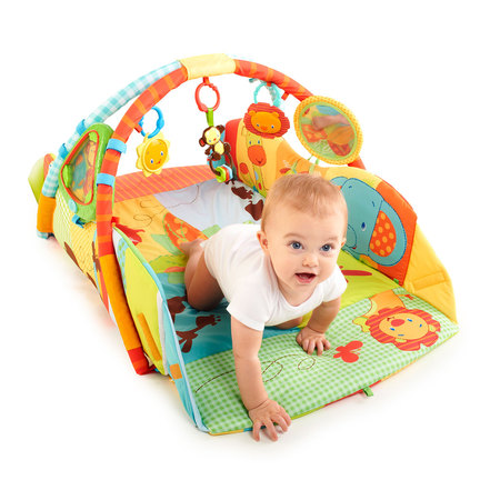 - 8 забавных игрушек крепятся по всему периметру коврика
