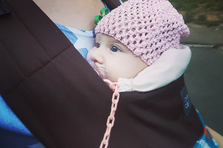 У малышки плотный май-слинг, а у меня пальто осеннее будет