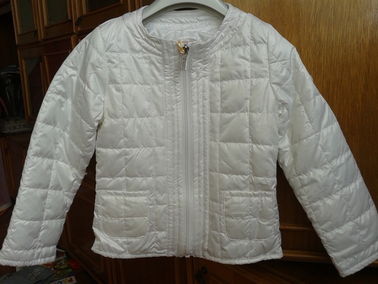 Очень красивая нежная курточка-пиджак, вместо кофты или джинсовки, т.е. прохладная, именно с этой целью и заказывалась. Модель вообще отказывается фотографироваться, поэтому как то так))) И платье спортивного стиля, плотный трикотаж, завязочки объем регулируют. Все размер 5, доча ростом 107см. и среднего телосложения.