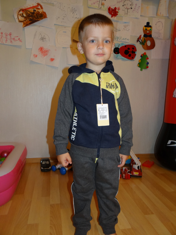 Размер 5 лет. Сидит отлично прям его. Муж сказал, что хочет такой же, хотя спортивную одежду не носит совсем!
