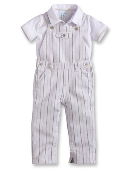 5. Комплект из комбинезона в полоску и поло с короткими рукавами. Цена 1400 руб