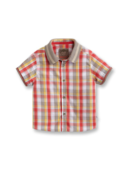 3. Рубашка красная и оранжевая, в клетку. Цена 850 руб