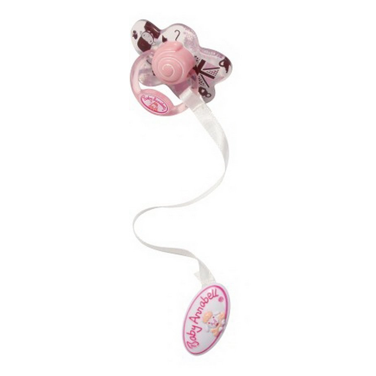 Соска для кукол Baby Annabell производителя Zapf Creation - необходимая вещь для игры с куклой Анабель Данную пустышку светло-розового цвета можно пристегнуть к одежде куклы при помощи специальной клипсы, закрепленной на белой ленте, чтобы она не потерялась. Представленная соска, выполненная из качественной пластмассы, имеет рожок с рельефной поверхностью, чтобы было удобнее давать ее кукле.