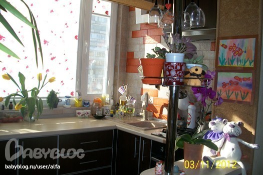 еще надо доработать - жалюзи, полки под мелоч сбоку привинтим, планку над посудомойкой для красоты такого же цвета как и низ)) Низ кстати не черный,а венге =))) мусорного ведра еще не нашли чтобы на дверь привинтить под мойкой ну и еще куча мелочи о которой думтаь не охота))))