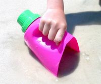Совочек для кладоискателей) суть в том, что в нижней части проделаны дырочки - вода и песок просачиваются, а ракушки, отшлефованное стекло, и прочие морские штуки остаются внутри) - себе взяала на заметку, поедем на море - надо будет сделать. И оставить там же не жалко)