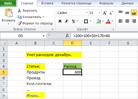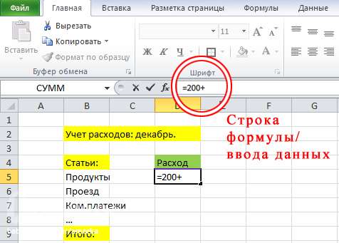 3. Я предлагаю вписывать данные таким образом: в строке формулы пишем "=" и далее каждый день приплюсовываем новые траты.