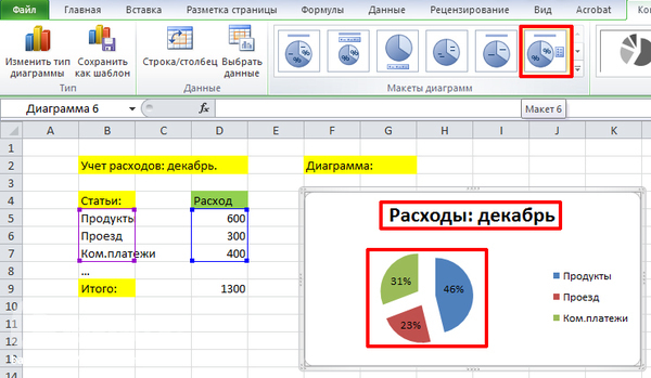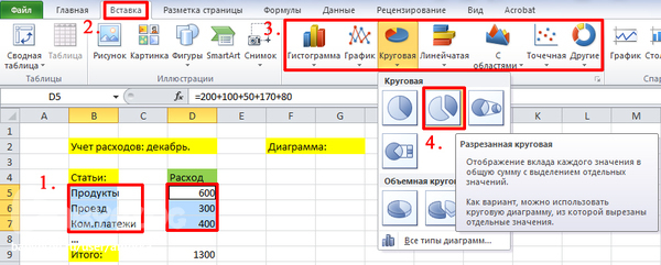 Программы для учетаСоставляем список расходов, считаем, составляем диаграмму.