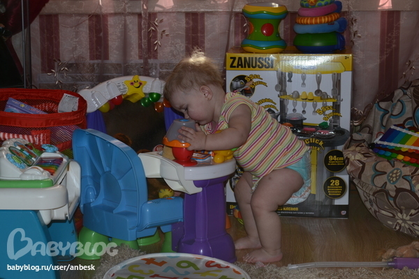 Я игрушки покупаю очень редко, уже несколько месяцев у нас в почете раскраски, восковые мелки, карандаши, акварель и соленое тесто для лепки))) 5-10 тоненьких книжек типа Репки и Курочки Рябы, иногда посудка. Самое любимое занятие - печь с мамой печенье и копаться в портфеле старшей сестры))) Еще любит рассматривать фотографии, узнаем на них нас, показываем животных ))) А в основном, что мама делает - то и ребенок))). Мама развешивет белье - ребенок вынимает из машинки и подает, мама подметает пол - ребенок подставляет совочек, мама моет посуду, ребенок ставит ее на полотенце и так до бесконечности))) Так и развиваемся)))