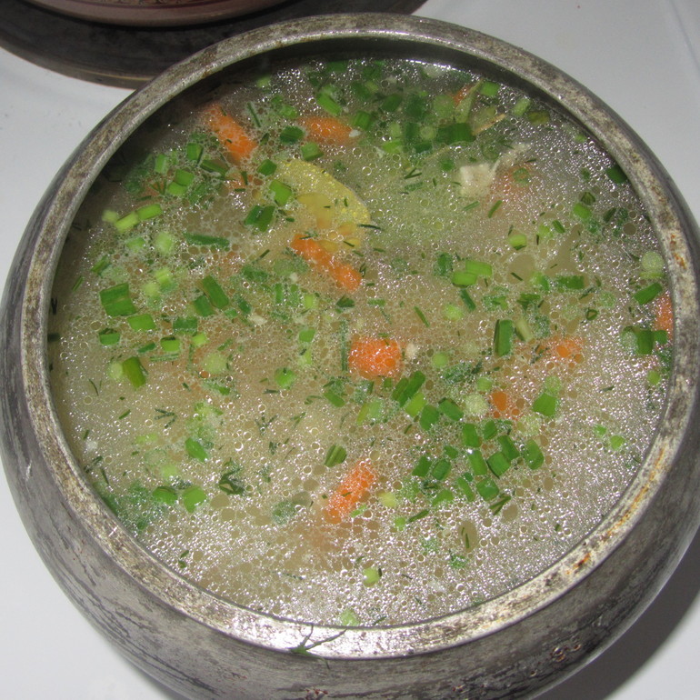 в бульон добавила- морковь резанную соломкой, 3 ст ложки паутинки Макфа, мясо порезанное