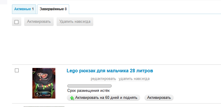 вот когда срок истек, оно у вас буде в разделе "завершенные", нажимаете активировать (просто "активировать", рядом будет кнопка "активировать на 60 дней" ее не надо-это платно) и все, объявление активируется на 30 дней как обычно.