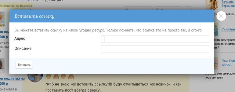 Потом жмешь "вставить" и вуаля у тебя активная ссылка на твой пост)))