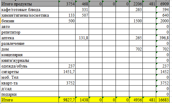 Я в минусе... (-3089) при этом перераспределила остаток средств на оставшуюся часть месяца, естественно ужав расходы...
