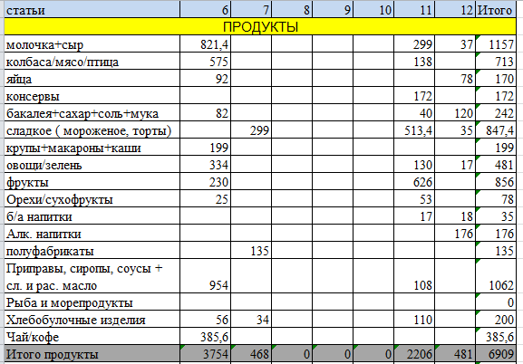на продукты я потратила 6909р. :