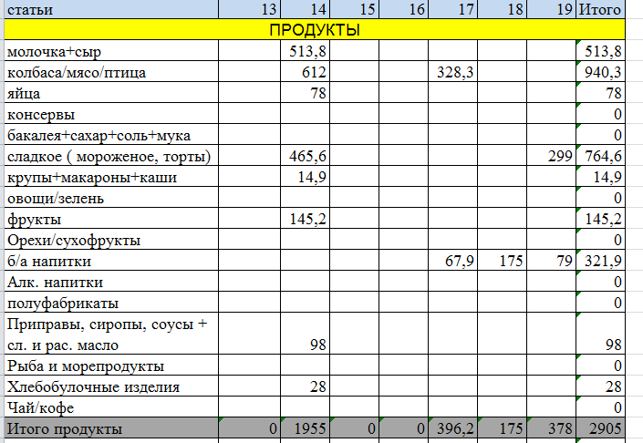Наша траты на продукты, не уложились. опять много сладкого ( мороженое)