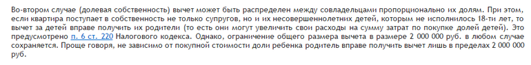 Дети тоже буду собственниками,т.к МК закладываем,т.е и собственность получается долевая,как я понимаю.И вроде с 15 года вычет могут получать каждый собственник на 2млн,или я опять что-то путаю?